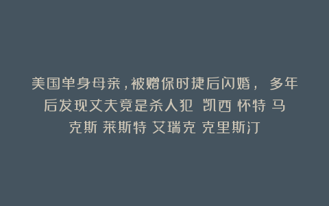 美国单身母亲,被赠保时捷后闪婚, 多年后发现丈夫竟是杀人犯!|凯西|怀特|马克斯|莱斯特|艾瑞克|克里斯汀