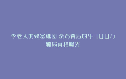 李老太的致富谜团:杀鸡背后的4700万骗局真相曝光