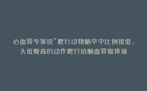 心血管专家说“爬行动物脑卒中比例很低,头低臀高的动作爬行给脑血管做体操