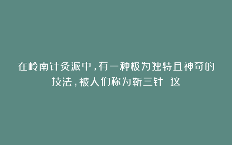 在岭南针灸派中,有一种极为独特且神奇的技法,被人们称为靳三针 这