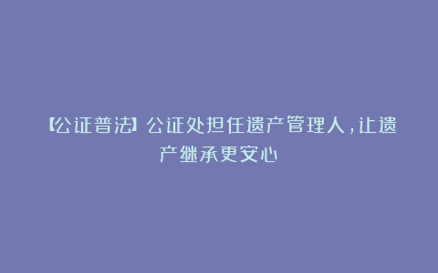 【公证普法】公证处担任遗产管理人,让遗产继承更安心!
