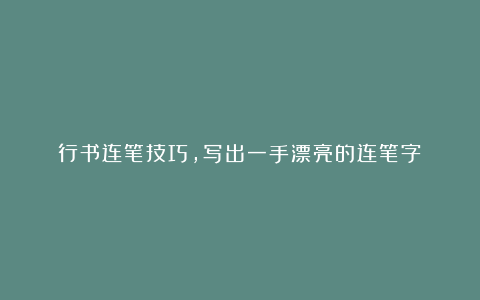 掌握26种行书连笔技巧,让你轻松在家练出一手好字!