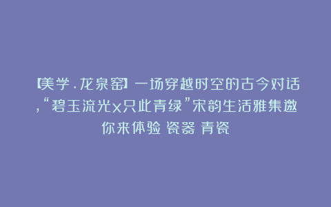 【美学.龙泉窑】一场穿越时空的古今对话,“碧玉流光x只此青绿”宋韵生活雅集邀你来体验|瓷器|青瓷