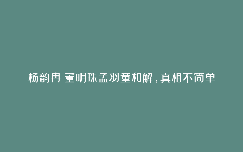 杨韵冉:董明珠孟羽童和解,真相不简单