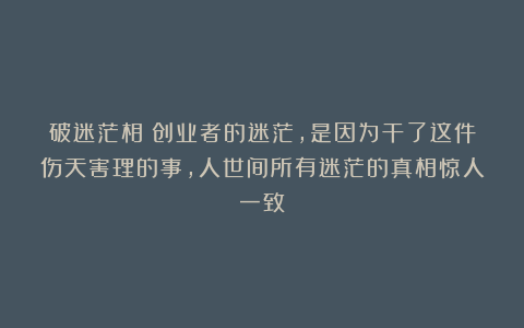 破迷茫相|创业者的迷茫,是因为干了这件伤天害理的事,人世间所有迷茫的真相惊人一致