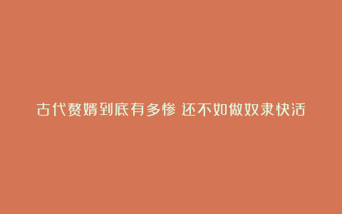 古代赘婿到底有多惨?还不如做奴隶快活