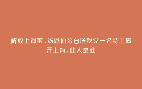解放上海前,汤恩伯亲自送我党一名特工离开上海,此人是谁?