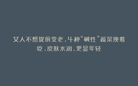 女人不想提前变老,4种“碱性”蔬菜换着吃,皮肤水润,更显年轻