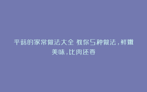 平菇的家常做法大全:教你5种做法,鲜嫩美味,比肉还香