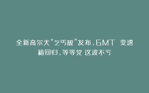 全新高尔夫“乞丐版”发布,6MT 变速箱回归,等等党:这波不亏
