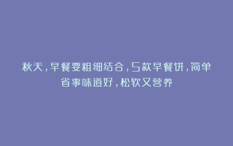 秋季贴秋膘并非是要长肉增肥,而是真正的为身体补充能量来抵御冬季的含量,所以秋天早餐至关重要,粗细粮要结合,这样才能营养均衡身体好,今天蓉儿为大家分享5道好吃的早餐饼,做法简单,松软又营养,养胃又健康。 …