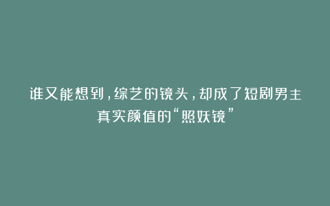 谁又能想到,综艺的镜头,却成了短剧男主真实颜值的“照妖镜”
