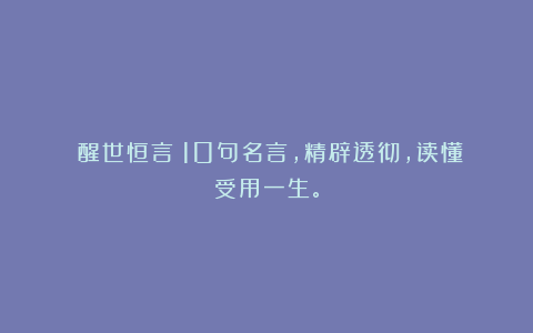 《醒世恒言》10句名言,精辟透彻,读懂受用一生。