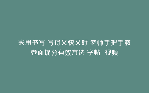 实用书写:写得又快又好!老师手把手教!卷面提分有效方法(字帖 视频)