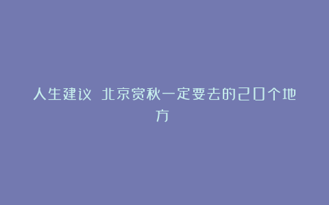 1年前北京 老舍曾将说过:“秋天一定要住在北平,北平的秋便是天堂,北京拥有很多绝美秋景观赏地” (图片来源网络) 路线推荐 第❶天:天安门广场→国家博物馆→故宫→景山公园 第❷天:颐和园→圆明园→清华大学→ …