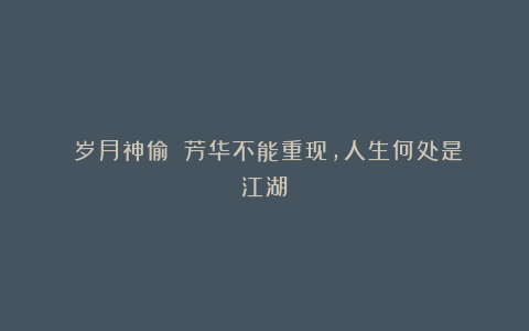 《岁月神偷》:芳华不能重现,人生何处是江湖?