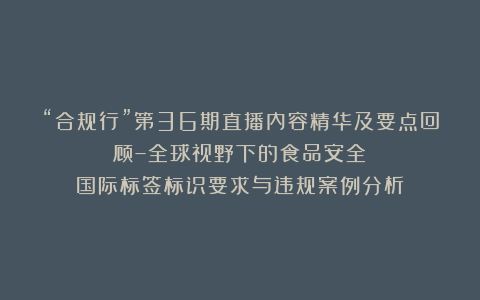 “合规行”第36期直播内容精华及要点回顾–全球视野下的食品安全:国际标签标识要求与违规案例分析