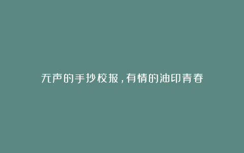 无声的手抄校报,有情的油印青春