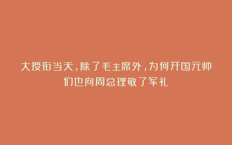 1955年授衔,开国元帅除了向主席敬军礼外,为何还要向总理敬军礼