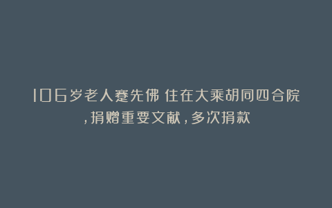 106岁老人蹇先佛:住在大乘胡同四合院,捐赠重要文献,多次捐款