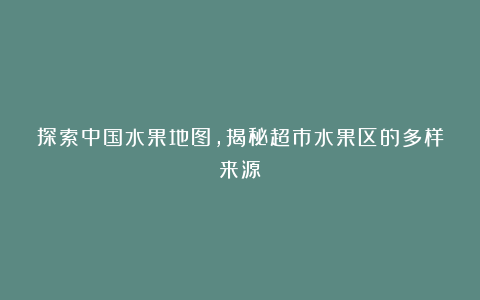 探索中国水果地图,揭秘超市水果区的多样来源!