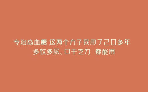 糖尿病:一个中成药,把全身上下多余的糖排出去!健脾益肾 补气阴