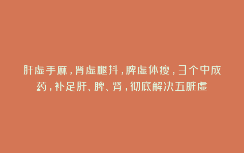 肝虚手麻,肾虚腿抖,脾虚体瘦,3个中成药,补足肝、脾、肾,彻底解决五脏虚!