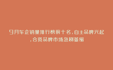 9月车企销量排行榜,自主强势崛起,合资格局生变