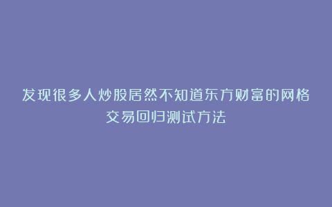 27天前买股票被套后,你是不是要么死扛等反弹,要么割肉认亏?其实不用这么被动,有一种不追加资金的解套方法,简单粗暴还靠谱——‘网格解套法’。 这套方法靠小波动赚差价摊薄成本,不用等大行 …