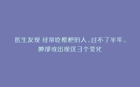 医生发现:经常吃枇杷的人,过不了半年,肺部或出现这3个变化!
