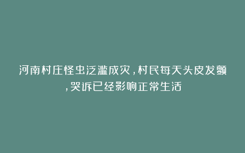 河南村庄怪虫泛滥成灾,村民每天头皮发颤,哭诉已经影响正常生活