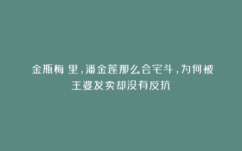 《金瓶梅》里,潘金莲那么会宅斗,为何被王婆发卖却没有反抗?