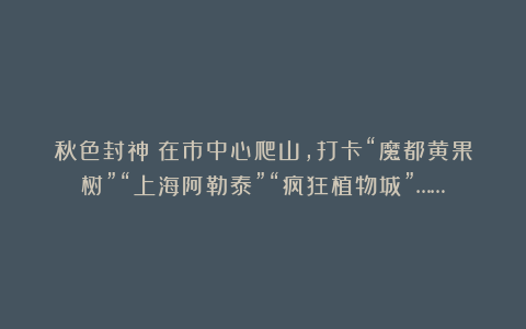秋色封神!在市中心爬山,打卡“魔都黄果树”“上海阿勒泰”“疯狂植物城”……