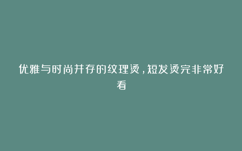1个月前充满少年感的「纹理卷短发」太好看了,很帅气,有种自由、率性、不被定义的风格态度。 搭配适合的穿搭。随性有型,知性中有一份酷飒。 短发纹理烫极具多变性 对于现代女性来说 它可以打造出干练利落又不失优雅的 …