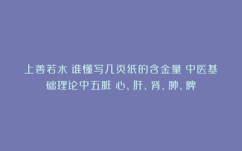 1个月前大道至简,博览古今,学习中医文化的博大精深;心藏神,肺藏魄,肝藏魂,脾藏意,肾藏志; 打开今日头条查看图片详情 一:五脏与脑 打开今日头条查看图片详情 心主神明,脑主元神; 肺主气,朝百脉,辅心行血, …