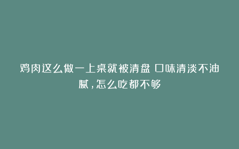 鸡肉这么做一上桌就被清盘!口味清淡不油腻,怎么吃都不够