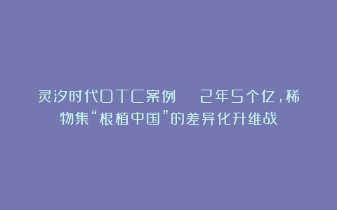 灵汐时代DTC案例 | 2年5个亿,稀物集“根植中国”的差异化升维战