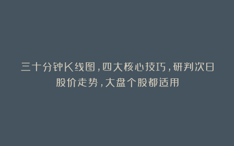 三十分钟K线图,四大核心技巧,研判次日股价走势,大盘个股都适用
