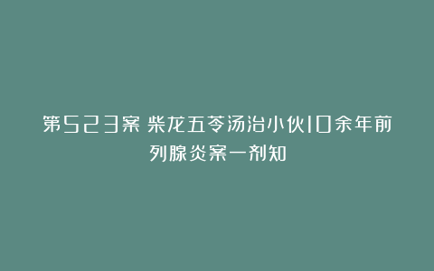 第523案:柴龙五苓汤治小伙10余年前列腺炎案一剂知