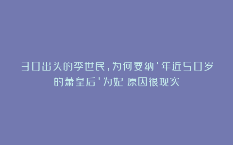 30出头的李世民,为何要纳’年近50岁的萧皇后’为妃?原因很现实