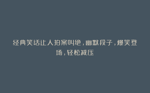 经典笑话让人拍案叫绝,幽默段子,爆笑登场,轻松减压!