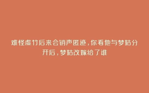 难怪虚竹后来会销声匿迹,你看他与梦姑分开后,梦姑改嫁给了谁