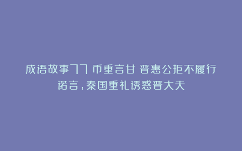 成语故事77:币重言甘丨晋惠公拒不履行诺言,秦国重礼诱惑晋大夫