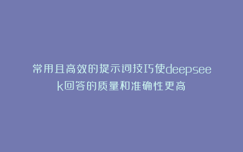 常用且高效的提示词技巧使deepseek回答的质量和准确性更高