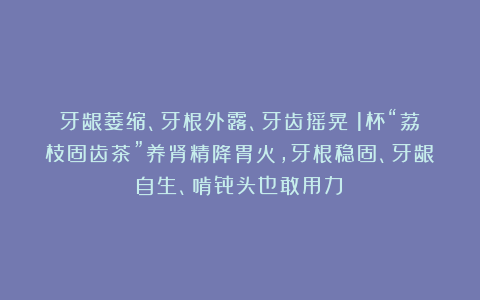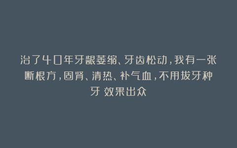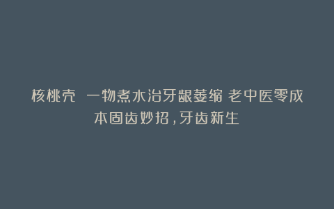 28天前[作揖]中医帮助你肝肾同补固齿, 杜仲+补骨脂+黑豆,中医揭秘“以骨养齿”的千年智慧牙齿松动、牙龈萎缩,啃个苹果都战战兢兢?中医认为“齿为骨之余”,牙齿健康与骨骼强健同根同源,而肾主骨生髓,肝主筋藏血 …