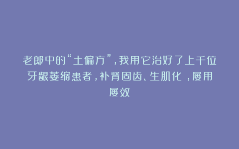 1个月前【古稀老中医千年固齿方公开!】牙龈出血、牙齿松动?火了!”这牙粉方我用了30年,73岁全口真牙没掉过一颗!”精选江油炮附子+宁夏大青盐+云南补骨脂等12味草本黄金配比,复刻清代 …