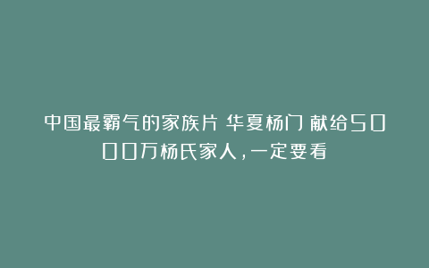 中国最霸气的家族片《华夏杨门》献给5000万杨氏家人,一定要看!