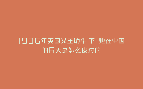 1986年英国女王访华(下):她在中国的6天是怎么度过的?