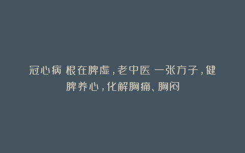 冠心病?根在脾虚,老中医:一张方子,健脾养心,化解胸痛、胸闷