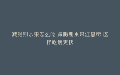 减脂期水果怎么吃?减脂期水果红黑榜!这样吃瘦更快!